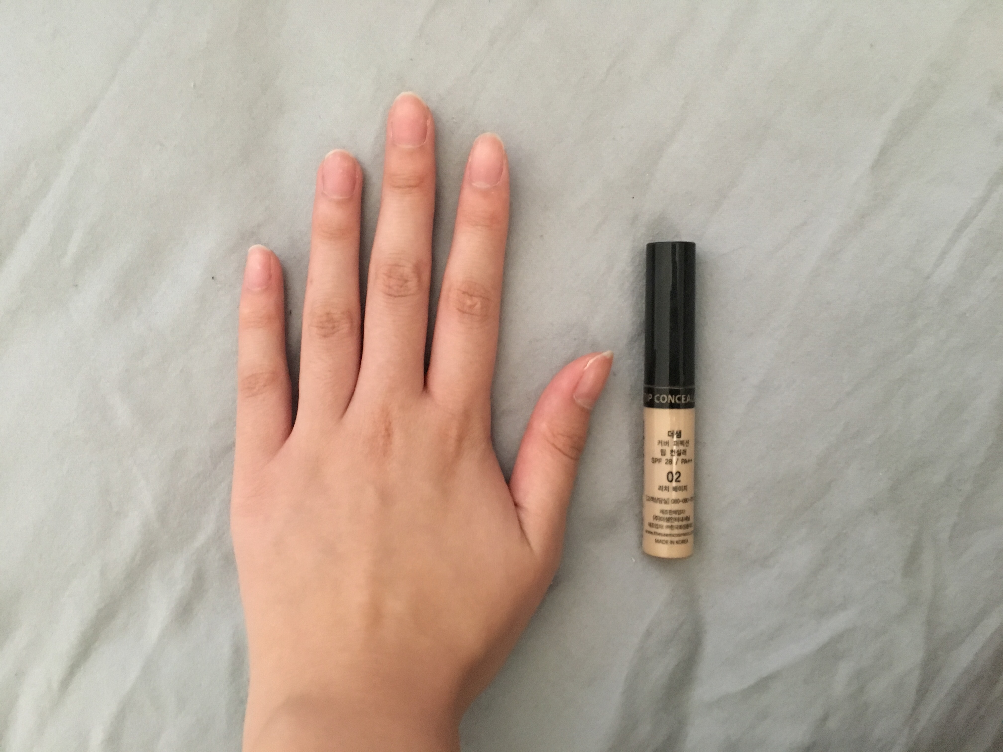 First impression is that it's much smaller than I thought it would be, compared to western brands sizes. (See picture comparison next to my hand.) It is around 90 degrees Fahrenheit where I live right now, so I thought it'd be the perfect day to test how well this holds up. I applied this in the morning before it got hot and the coverage was very good! It covered my dark spots and redness very well. The product is very smooth and easy to blend. I would say it is a medium-full to full coverage concealer. I have oily skin so the product did not fight well with the oils building up on my face. Make sure to use primer and powder if you are going to be wearing this product and have oily skin. If you have dry skin, I would not worry about this at all. In the shade #02, I thought it would be a little light for me because Korean shades run very light. But this is actually a decent color match on me, it is a true beige color with a more pink undertone when you apply but then it oxidizes into a more yellow undertone.