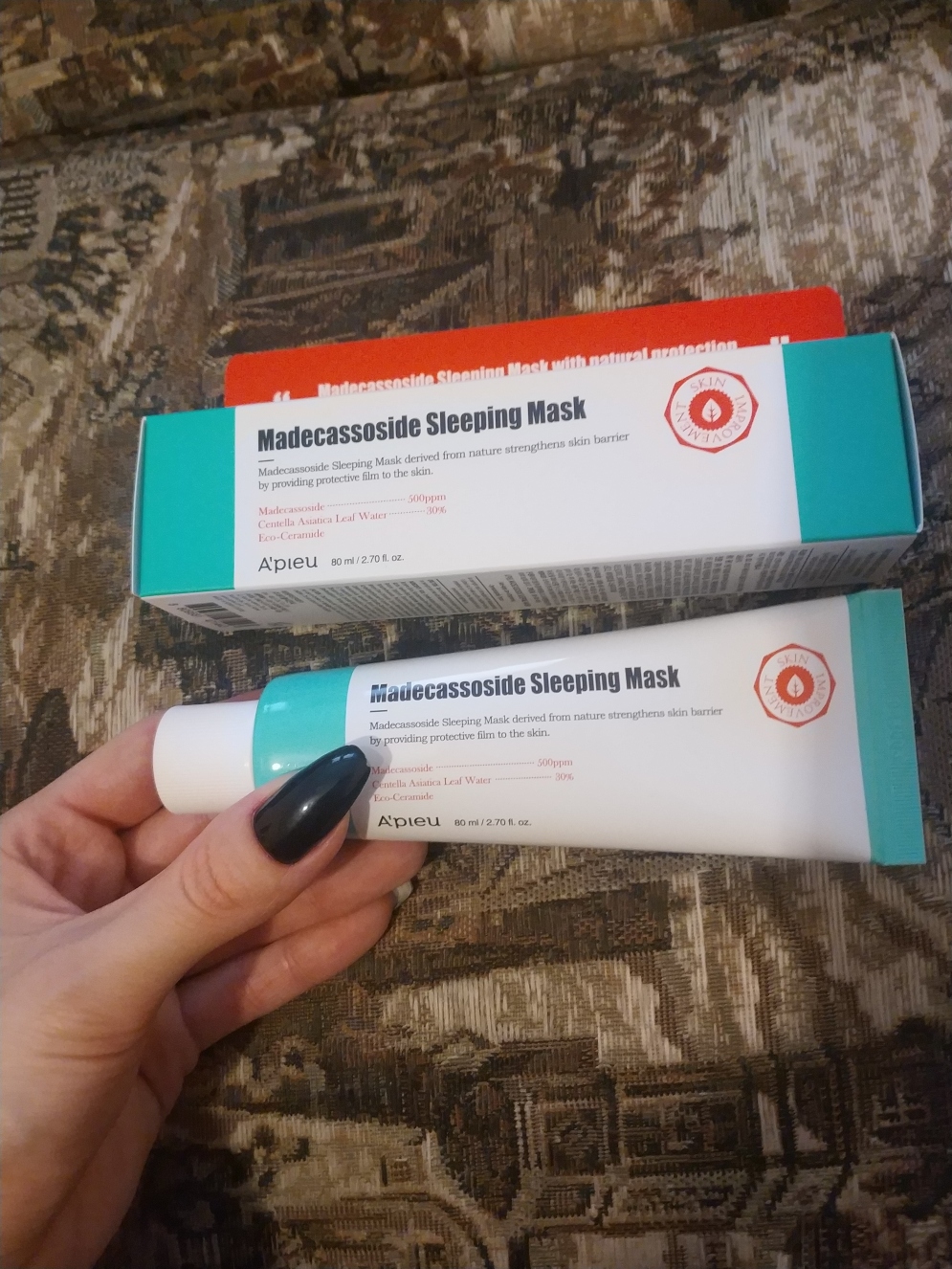 pro…@ Приятная и комфортная маска: довольно быстро впитывается и не пачкает подушку, великолепно смягчает кожу, успокаивает и снимает раздражения. Утром кожа бархатистая, без жирного блеска, напитанная, с ровным тоном.
