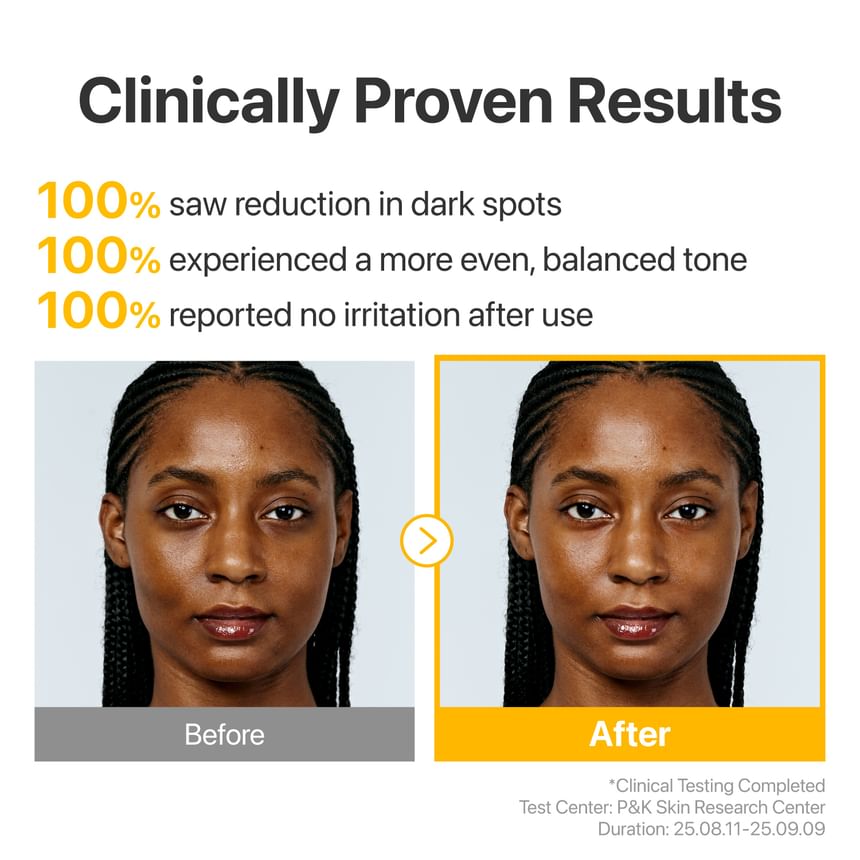 • Formulated with Glutathione, Tranexamic Acid, and Vitamin Tree Water to help visibly fade discoloration and restore skin radiance.