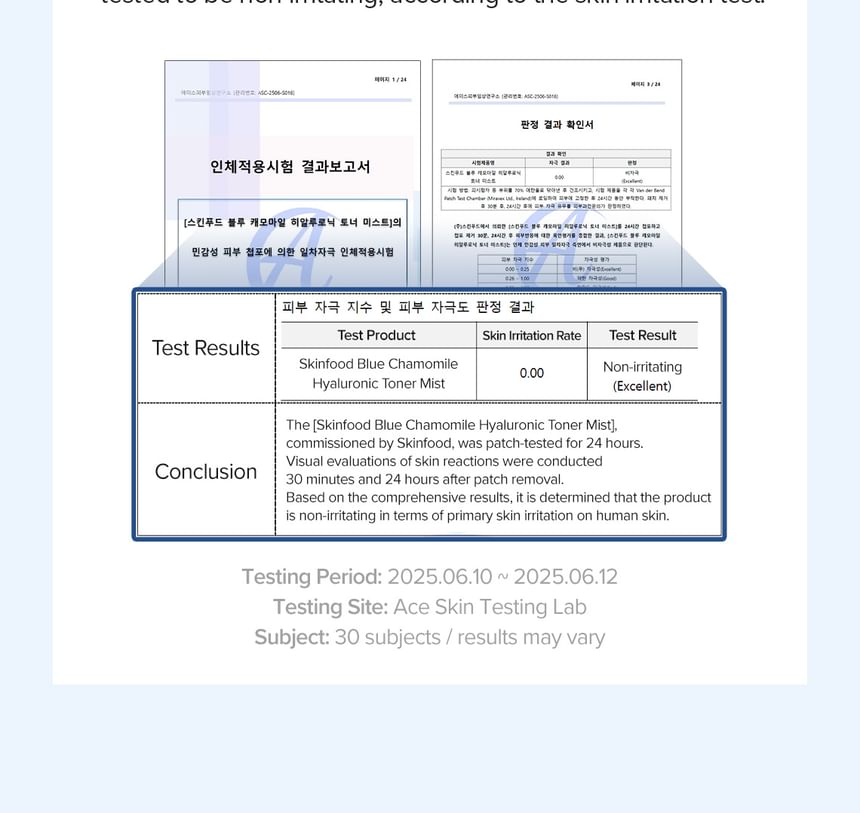 Skin irritation test completed.