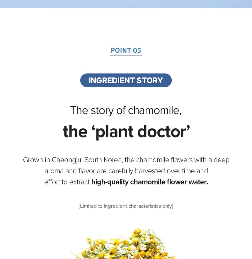 Sodium Guaiazulene Sulfonate (Azulene): A powerful soothing agent derived from Chamomile that helps repair damaged skin and provides deep calming effects.