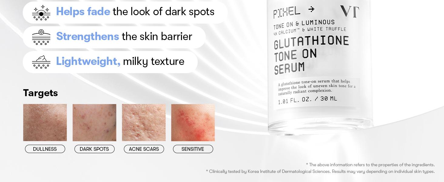 The VT Cosmetics Glutathione Tone on Serum is a high-performance brightening serum designed to transform dull, uneven skin into a transparent and radiant glow.